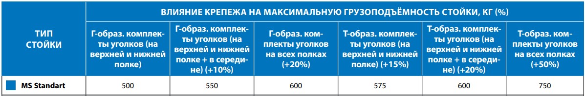 Стеллаж MS Standart 160/100х60/4Артикул: 35707Нет в наличии 8 540 Р 5 430 РЭкономия: 3 110 Р Стеллаж MS Standart 160/100х60/4 теперь в вашей корзине покупок ОписаниеХарактеристикиОтзывыДокументацияДоставкаОплатаОписание Стеллаж MS Standart 160/100х60/4 Металлические стеллажи MS Standart предназначены для хранения документов и различных грузов в офисе, на складе, в архиве. Металлические стеллажи MS Standart могут использоваться в различных сферах деятельности как в офисном или производственном пространстве, так и на складах или мастерских. Применение стеллажей не ограничивается нашими рекомендациями и зависит от поставленных целей и нужд заказчика. Стандартные комплекты стеллажей серии MS включают: стойки, полки, крепеж (метизы, Г- или Т- образный усилитель стойки, пластиковый подпятник). Верхняя и нижняя полки крепятся через Г-образные усилители, остальные полки напрямую к стойке Особенности стеллажей серии MS Standart: Стойки MS Standart: усиленный угловой профиль сложного сечения 30х30 мм; толщина стали 1,2 мм; два вида усилителя стоек: Г-образный (сборка с использованием болтов и гаек), и Т-образный (сборка без гаек). Полки MS Standart: равномерно распределенная нагрузка на полку – 100 кг; высота бокового ребра полки – 33 мм; шаг регулирования высоты полок – 25 мм; толщина металла полки – 0,5 мм; одно центральное ребро жёсткости. Стеллаж MS Standart: максимальная нагрузка в стандартной комплектации – 500 кг; два вида подпятников: пластиковые или регулируемые металлические (при установке регулируемых подпятников нагрузка снижается до 400 кг и увеличение грузоподъемности за счет использования усилителей невозможно). Возможно использование подпятника без винта для анкерного крепления к полу; цвет: серый полуматовый (RAL 7038); тип покрытия: порошковое. Стандартная комплектация: Стойка MS Standart 160 – 4 шт. Полка MS Standart 100x60 – 4 шт. Комплект Г-образного крепежа стойки MS Standart (Г-образные уголки 4 шт. + подпятник пластиковый 1 шт.) – 4 шт. Дополнительные аксессуары для стеллажа: Нажмите на картинку, чтобы посмотреть все дополнительные аксессуары для стеллажаХарактеристики Внешние размеры (ВхШхГ)1600 × 1000 × 600 мм Нагрузка на стеллаж, кг500 Макс. нагрузка на полку, кг100 Кол-во полок4 Толщина металла стойки, мм1 Толщина металла полки, мм0.5 Шаг перфорации стойки, мм25 Креплениена болтах Покрытиепорошковое Вес стоек (4 шт.) без полок, кг4 Вес одной полки, кг5 Транспортные размеры (ВхШхГ)2010 × 660 × 75 мм Гарантия1 год ПроизводительПРОМЕТ (Россия) Отзывы посетителей(0)Оставьте отзыв об этом товаре первым!ДокументацияДоставкаСамовывоз в Смоленске Вы можете самостоятельно забрать приобретённый товар со склада по адресу: г. Смоленск, ул. Смольянинова д. 15, корпус 6. Отгрузка товара производится только после предварительного согласования с менеджером, оформлявшим заказ. Доставка по Смоленску и области При сумме заказа более 20 000 рублей доставка в черте города – бесплатно. Стоимость доставки по области рассчитывается менеджером индивидуально. Доставку осуществляем в течение 3-х рабочих дней (в зависимости от загруженности логистической системы), чаще всего — на следующий день после оформления заказа. Доставка осуществляется до подъезда без выгрузки и подъема заказа. Стоимость разгрузки (подъёма) товара в квартиру/офис оплачивается дополнительно согласно таблице: Вес, кг Подъём на 1 этаж Подъём на 2 этаж (без лифта) Подъём выше (без лифта) до 35 