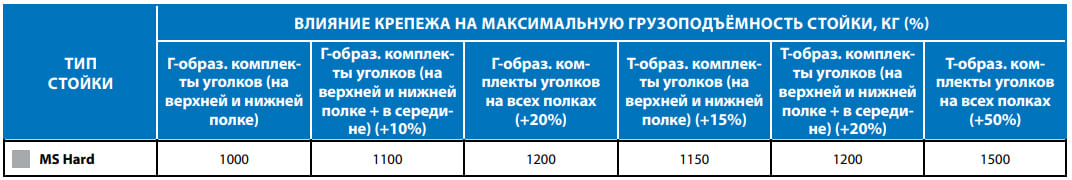 Стеллаж MS Hard 185/100x40Артикул: 35683-1Артикул: 35683-2Артикул: 35683-3Артикул: 35683-4Варианты: 3 полки4 полки5 полок6 полокОсновной склад: Нет в наличииСклад Смоленск: Нет в наличииОсновной склад: Нет в наличииСклад Смоленск: Нет в наличииОсновной склад: Нет в наличииСклад Смоленск: Нет в наличииОсновной склад: Нет в наличииСклад Смоленск: Нет в наличии 8 590 Р 5 470 РЭкономия: 3 120 Р Стеллаж MS Hard 185/100x40 теперь в вашей корзине покупок ОписаниеХарактеристикиОтзывыДокументацияДоставкаОплатаОписание Стеллаж MS Hard 185/100x40 Металлические стеллажи для склада и мастерских Металлические стеллажи MS Hard могут использоваться в различных сферах деятельности как в офисном или производственном пространстве, так и на складах или мастерских. Применение стеллажей не ограничивается нашими рекомендациями и зависит от поставленных целей и нужд заказчика. Особенности стеллажей серии MS Hard: Стойки MS Hard: усиленный угловой профиль сложного сечения 40х40 мм; толщина стали 1,5 мм; два вида усилителя стоек: Г-образный (сборка с использованием болтов и гаек), и Т-образный (сборка без гаек). Полки MS Hard: равномерно распределенная нагрузка на полку – 200 кг; высота бокового ребра полки – 33 мм; шаг регулирования высоты полок – 25 мм; толщина основания 0,7 мм. Стеллаж MS Hard: максимальная нагрузка – 1000 кг; два вида подпятников: пластиковые или регулируемые металлические (при установке регулируемых подпятников нагрузка снижается до 400 кг и увеличение грузоподъемности за счет использования усилителей невозможно); цвет: серый полуматовый (RAL 7038). Стандартная комплектация: Стойка MS Hard 185 – 4 шт. Полка MS Hard 100x40 – выбранное количество Комплект Г-образного крепежа стойки (Г-образные уголки 4 шт. + подпятник пластиковый 1 шт.) – 4 шт. Дополнительные аксессуары для стеллажа: Нажмите на картинку, чтобы посмотреть все дополнительные аксессуары для стеллажаХарактеристики Внешние размеры (ВхШхГ)1850 × 1000 × 400 мм Нагрузка на стеллаж, кг1000 Макс. нагрузка на полку, кг200 Кол-во полок3, 4, 5, 6 Толщина металла стойки, мм1 Толщина металла полки, мм0.7 Шаг перфорации стойки, мм25 Креплениена болтах Покрытиепорошковое Вес стоек (4 шт.) без полок, кг8 Вес одной полки, кг4 Гарантия1 год ПроизводительПРОМЕТ (Россия) Отзывы посетителей(0)Оставьте отзыв об этом товаре первым!ДокументацияДоставкаСамовывоз в Смоленске Вы можете самостоятельно забрать приобретённый товар со склада по адресу: г. Смоленск, ул. Смольянинова д. 15, корпус 6. Отгрузка товара производится только после предварительного согласования с менеджером, оформлявшим заказ. Доставка по Смоленску и области При сумме заказа более 20 000 рублей доставка в черте города – бесплатно. Стоимость доставки по области рассчитывается менеджером индивидуально. Доставку осуществляем в течение 3-х рабочих дней (в зависимости от загруженности логистической системы), чаще всего — на следующий день после оформления заказа. Доставка осуществляется до подъезда без выгрузки и подъема заказа. Стоимость разгрузки (подъёма) товара в квартиру/офис оплачивается дополнительно согласно таблице: Вес, кг Подъём на 1 этаж Подъём на 2 этаж (без лифта) Подъём выше (без лифта) до 35 кг 400 700 300 руб/этаж от 35 до 50 кг 500 900 400 руб/этаж от 50 до 100 кг 900 1400 500 руб/этаж от 100 до 150 кг 1200 1800 600 руб/этаж от 150 до 200 кг 1500 2350 850 руб/этаж от 200 до 250 кг 2700 4050 1350 руб/этаж от 250 до 300 кг 4200 6300 2100 руб/этаж от 300 до 350 кг 4700 7050 2350 руб/этаж от 350 до 400 кг 6