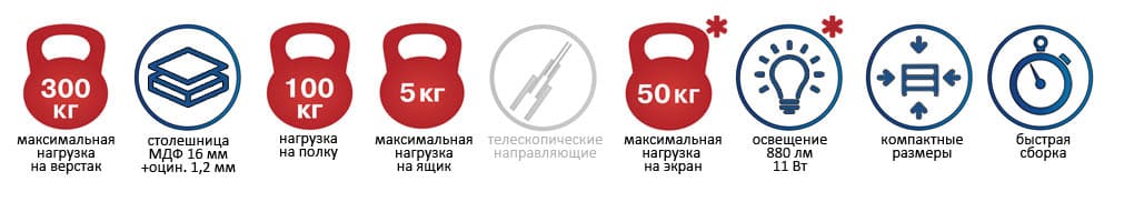 Верстак Garage №113Артикул: 16487Нет в наличии 13 800 Р 9 930 РЭкономия: 3 870 Р Верстак Garage №113 теперь в вашей корзине покупок Хит продажОписаниеХарактеристикиОтзывыДокументацияДоставкаОплатаОписаниеВерстак Garage №113 Предназначены для удобной организации рабочего места в гаражах, мастерских, в учебных заведениях, а за счет компактных размеров могут быть установлены на балконах, в бытовках. Нажмите, чтобы увеличить картинку Основные преимущества: Максимальная распределенная нагрузка на верстак - 300 кг. Столешница изготовлена из МДФ 16 мм с накладкой из оцинкованного листа металла толщиной 1,2 мм. Опоры изготовлены из стойки стеллажа MS Hard , профиль сечением 40х40 мм,толщина стали 1,5 мм, шаг перфорации 50 мм. Комплект верстака оснащен двумя полками с нагрузкой 100 кг. Верстак дополнен ящиком с нагрузкой 5 кг. Верстак возможно дополнить экраном и комплектом освещения. Поставляются в разобранном виде в одной упаковке. Комплектация Верстак Garage №112 – 1 шт. Ящик – 1 шт. Дополнительные аксессуары на экран для инструментов: Помогают удобно организовать рабочее место Нажмите на картинку, чтобы посмотреть все дополнительные аксессуары на экранХарактеристики Внешние размеры (ВхШхГ)920 × 1000 × 500 мм Макс. нагрузка на верстак, кг300 Макс. нагрузка на полку, кг100 Макс. нагрузка на ящик5 кг Высота рабочей поверхности, мм920 Ширина столешницы, мм1000 Глубина столешницы, мм500 Кол-во ящиков1 Кол-во полок2 Вес23 кг Гарантия1 год ПроизводительПРОМЕТ (Россия) Отзывы посетителей(0)Оставьте отзыв об этом товаре первым!ДокументацияДоставкаСамовывоз в Смоленске Вы можете самостоятельно забрать приобретённый товар со склада по адресу: г. Смоленск, ул. Смольянинова д. 15, корпус 6. Отгрузка товара производится только после предварительного согласования с менеджером, оформлявшим заказ. Доставка по Смоленску и области При сумме заказа более 20 000 рублей доставка в черте города – бесплатно. Стоимость доставки по области рассчитывается менеджером индивидуально. Доставку осуществляем в течение 3-х рабочих дней (в зависимости от загруженности логистической системы), чаще всего — на следующий день после оформления заказа. Доставка осуществляется до подъезда без выгрузки и подъема заказа. Стоимость разгрузки (подъёма) товара в квартиру/офис оплачивается дополнительно согласно таблице: Вес, кг Подъём на 1 этаж Подъём на 2 этаж (без лифта) Подъём выше (без лифта) до 35 кг 400 700 300 руб/этаж от 35 до 50 кг 500 900 400 руб/этаж от 50 до 100 кг 900 1400 500 руб/этаж от 100 до 150 кг 1200 1800 600 руб/этаж от 150 до 200 кг 1500 2350 850 руб/этаж от 200 до 250 кг 2700 4050 1350 руб/этаж от 250 до 300 кг 4200 6300 2100 руб/этаж от 300 до 350 кг 4700 7050 2350 руб/этаж от 350 до 400 кг 6700 10050 3350 руб/этаж от 400 до 450 кг 7700 11550 3850 руб/этаж от 450 до 500 кг 9200 13800 4600 руб/этаж от 500 до 550 кг 10500 15600 5100 руб/этаж от 550 до 600 кг 13500 19600 6100 руб/этаж от 600 до 650 кг 15500 23100 7600 руб/этаж более 650 кг Обговаривается отдельно Обговаривается отдельно Обговаривается отдельно *Расчет в таблице приведен за единицу товара. Полную стоимость уточняйте у менеджера. Разгрузка (выгрузка из машины), подъем на этаж и сборка в стоимость доставки НЕ входят. Данные услуги рассчитываются и оплачиваются отдельно! Стоимость разгрузки (подъема) товаров с лифтом оплачивается, как на 1-й этаж. Разгрузка (подъём) на цокольный этаж оплачивается, как на 2-й этаж без лифта. Оказываем услуги по сборке. Стоимость сборки единицы товара составляет 900 ру